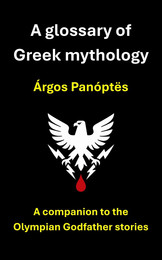 This glossary was specifically intended to support the Olýmpian Godfather novels. However, it may be of interest to a broader audience. It contains hundreds of entries regarding places, people and other beings that figure in Greek mythology, with variant English and Latin spellings, and Ancient Greek spellings alongside.
